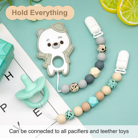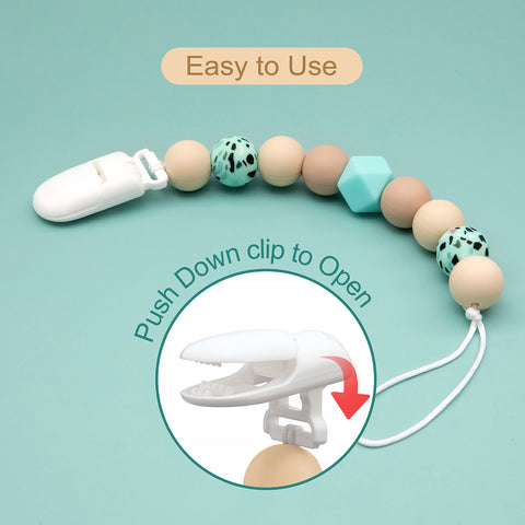 🎨『 2 in 1 PACIFIER CLIPS with two option, i.e. " Leopard Beads " & " No Leopard Beads" 』- The Pacifier holder work with ANY pacifiers, soothies, nuks, mams and teething toys, keeping them close to baby and off the floor. Attach to clothes, drool bibs, blankets, toys, strollers, play gyms or car seats.