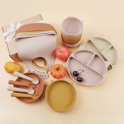 - COMPLETE BABY FEEDING SET: Includes everything you need to get started with solid food for toddlers These high-quality solid color baby feeding supplies come in a box and will be a perfect baby registry gift for infants.